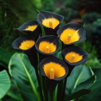Уход: Каллы нуждаются в регулярном поливе, особенно в период активного роста и цветения. Подкормку следует проводить комплексными удобрениями для цветущих растений каждые 2–3 недели. После цветения полив следует постепенно сокращать, а клубневые каллы можно выкопать и хранить в сухом прохладном месте до следующей весны. Зимой комнатные каллы нуждаются в периоде покоя, поэтому полив следует значительно сократить и перенести растение в более прохладное место. Важно следить за влажностью воздуха, особенно в отапливаемых помещениях, и при необходимости опрыскивать листья водой.