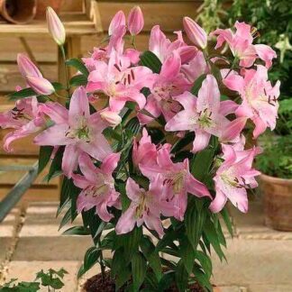 Лилия восточная горшечная Мона Лиза купить по цене от 350.00р. в интернет-магазине «Посадика» с доставкой почтой в в Москве и по всей России – [изображение №1].